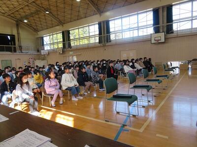 いよいよ今日から全校での卒業式練習が体育館で行われました。久しぶりに全校児童が参加して行う卒業式です。大まかな流れや礼の仕方、座り方、立ち方などを練習しました。