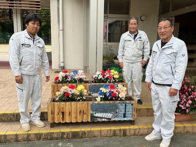 立野ダムが昨年度完成し、立野ダム安全協会から木製プランターを2つ寄贈していただきました。
