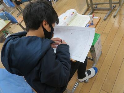 5年生は国語「提案文」を書いていました。自分がみんなに提案したいことをアンケートをもとに資料を作成し、提案する文章を考えていました。タブレットで資料を作る子もいました。さすが高学年、それぞれよく考えた提案になっていました。