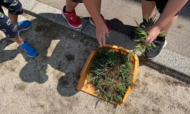 9月28日(土)に開催される運動会に向けて、1人10本の除草作業をしました。