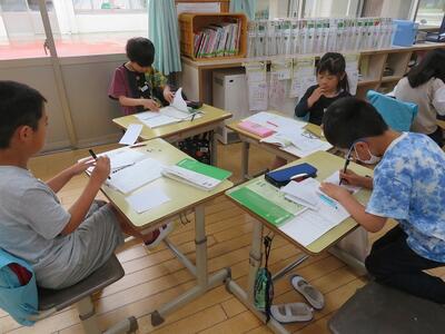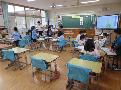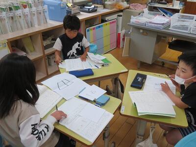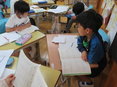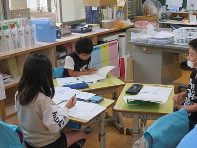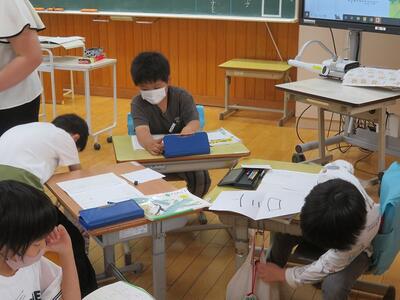 子どもたちは、班で協力して学習を進めていました。