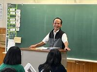 総合的な学習の時間で取り組んでいる「南阿蘇の水やいきものについて」の学習の一環として、阿蘇火山博物館の理学博士 鍵山 恒臣 先生(京都大学名誉教授)と環境省 阿蘇くじゅう国立公園管理事務所のアクティブ・レンジャー 藤田 幸代 さんを招いて、南阿蘇の水やいきものの学習しました。