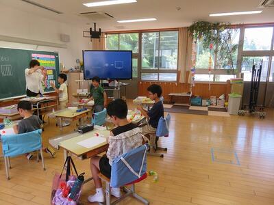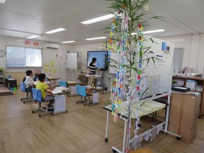 明日は七夕、りんどう学級では、七夕づくりが行われていました。かざりを作ったり、かざりつけをしたり、楽しそうに活動していました。