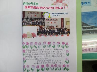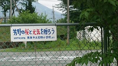 熊本地震後、芳野小学校からは、桜の木の植樹をしていただきました。今もその桜は元気に育っています。