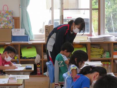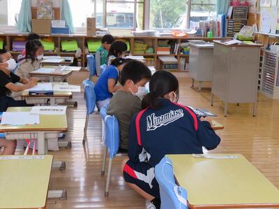 昨日から南阿蘇中2年生の職場体験が行われ、本校卒業生の2人が2日間頑張りました。休み時間は子ども達に引っ張りだこでした。