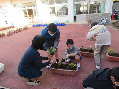 3年生の花植え、各学年、新しい花を植えています。