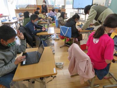 6時間目、4年生から6年生は、最後のクラブ活動がありました。クラブ活動は子どもたちがとても楽しみにしている異学年で行う活動です。今日は、美術・創作クラブではゲストティーチャーをお招きして活動しました。