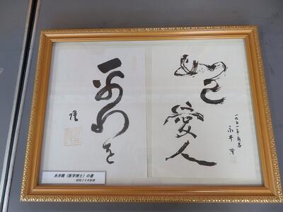 2時間目、6年生では修学旅行後の平和学習が行われ、南阿蘇中に寄贈された永井隆博士直筆の絵や書を見ました。