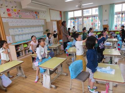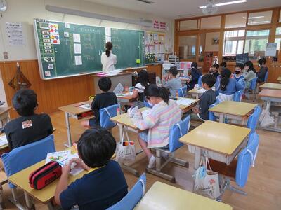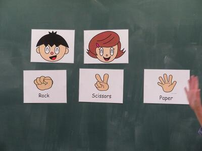 1年生は、外国語活動が行われ、英語でじゃんけんをしていました。