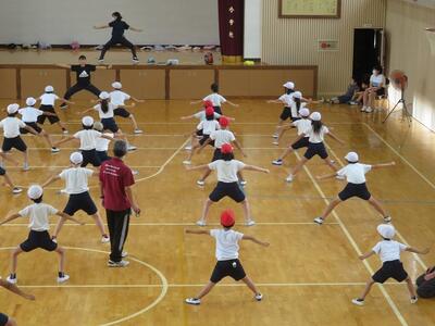 4時間目、3・4年生の合同体育が体育館で行われました。運動会に向けてソーラン節練習の1時間目でした。4年生が昨年の経験を生かしてリードしていました。3年生も見よう見まねで頑張っていました。
