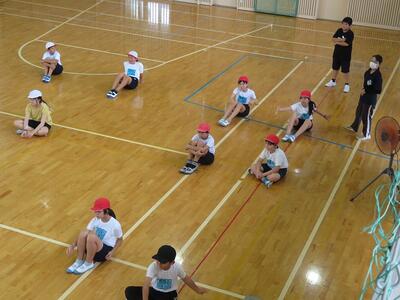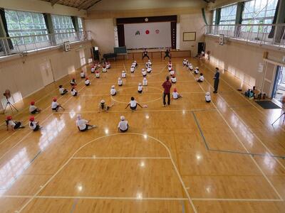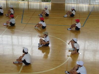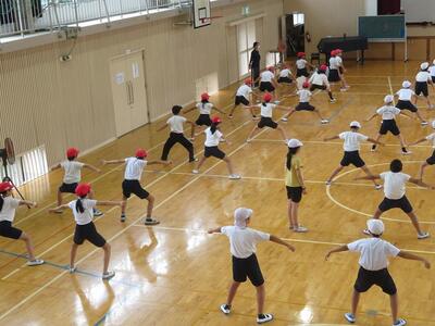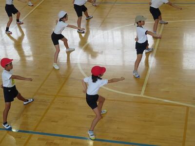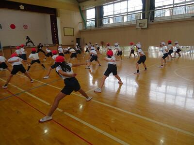 4時間目、3・4年生の合同体育が体育館で行われました。運動会に向けてソーラン節練習の1時間目でした。4年生が昨年の経験を生かしてリードしていました。3年生も見よう見まねで頑張っていました。
