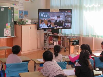 2・3時間目、1年生の生活科は、「3交流会」をリモートで行いました。南西小・一の宮小・河原小の3校での交流です。生活科で学習したことをリモートによる交流を通して学び合いました。各学校の発表内容は、「秋」をテーマに3校がつくったもの、クイズ、あそびなどバラエティに富んでいました。発表からお互いの学びや頑張ったことがよく分かりました。