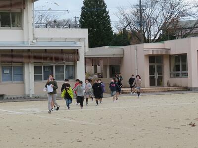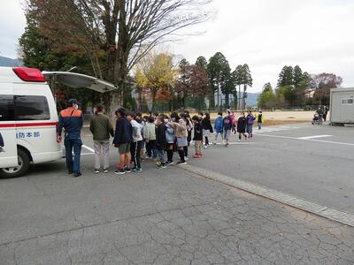 今日は、2時間目に火災避難訓練を行いました。避難を促す放送の後、全員が落ち着いて避難することができました。避難を指示する放送から全員が避難場所に避難するまで2分44秒でした。