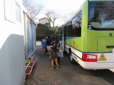 11/21 昼休みの落ち葉掃き、3年生社会科見学