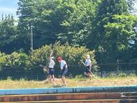 プールの中の土や落ち葉を掃いたり、周辺に残っている草を運んだり、