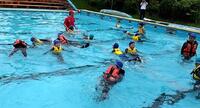 ライフジャケットを着用する班と着用しない班の2班に分かれ、泳いでみました。