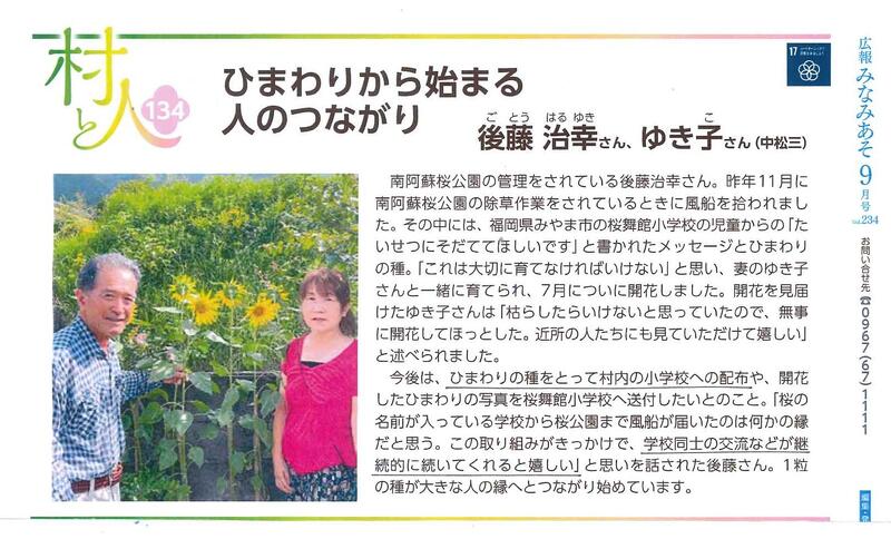 来年の夏には大輪のひまわりを育て、みやま市立桜舞小学校に写真を送りたいと思います。