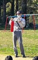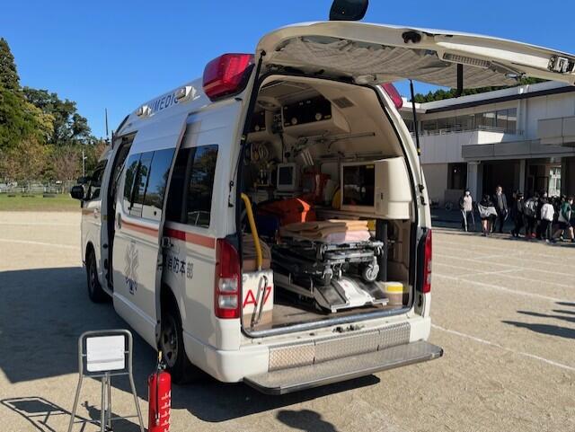 今日は、阿蘇広域行政事務組合消防本部から消防士の方に来ていただく予定でしたが、急に対応が入ったため、救命救急士の方々に来ていただくことになりました。