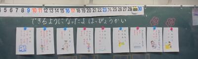 9班に分かれて、1年生なって出来るようになったことを発表しました。
