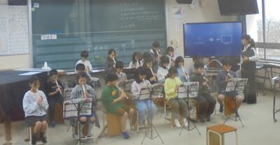 5曲の合唱や合奏を発表しました。朝の時間や休み時間に練習した成果が発揮されました。