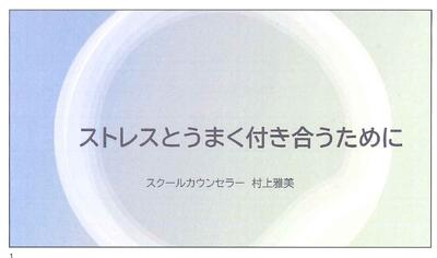 児玉SCに引き続き、5年生には村上SCから「ストレスとうまく付き合うために」の授業をしていただきました。