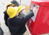 国語の時間に書いた年賀状を持って、交通ルールやマナーを守りながら、へ年賀状を出しに行きました。