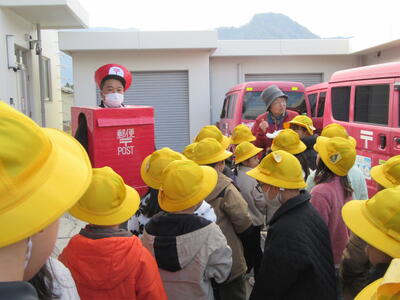 1年生の国語科「てがみをだしにいこう」の学習の一環で、河陽郵便局に行ってきました。