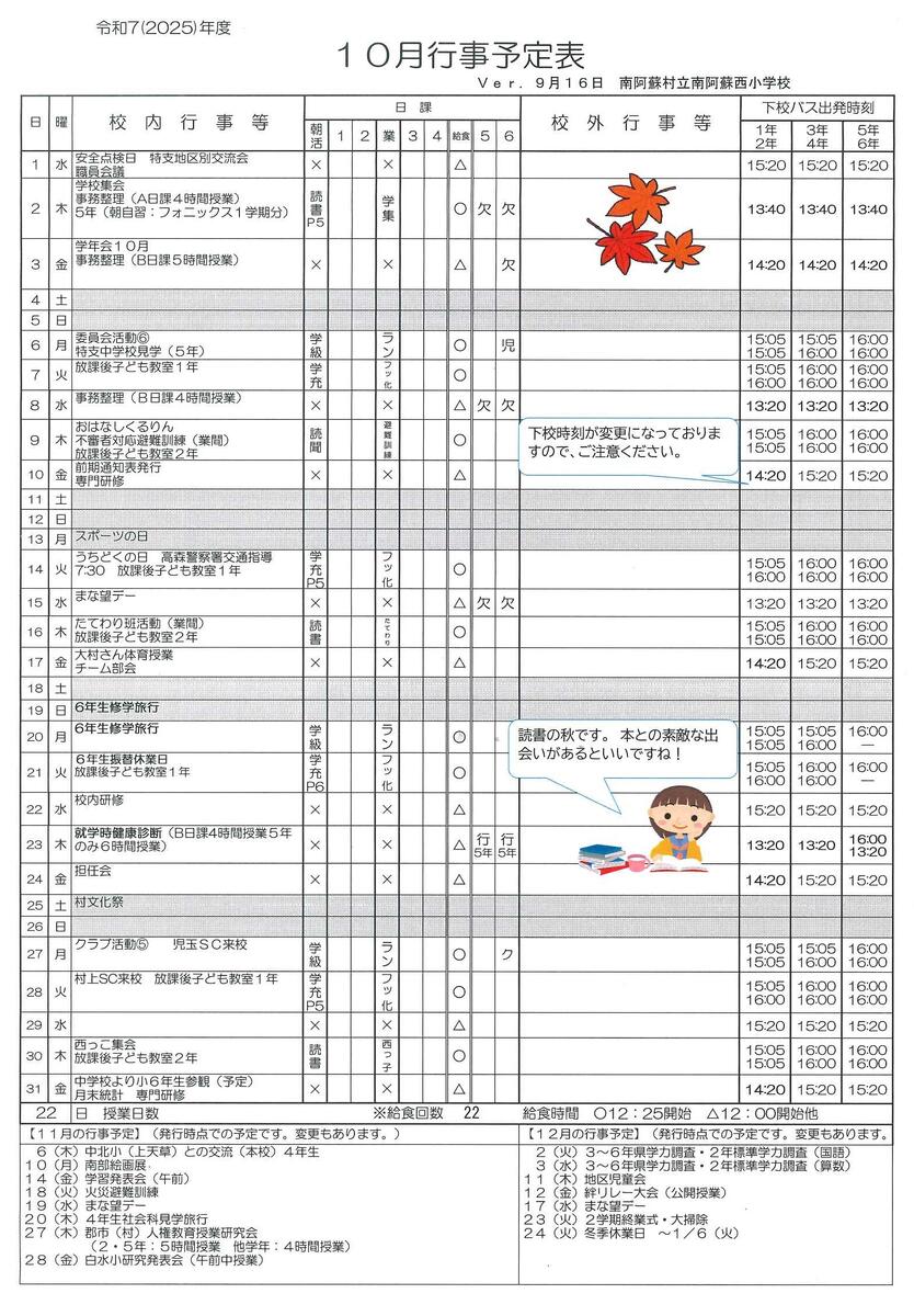 ◎10月の行事予定 R4南西小 10月行事予定 最新9.22.pdf