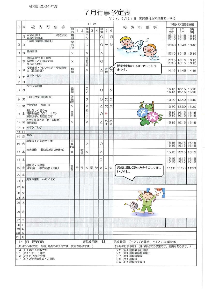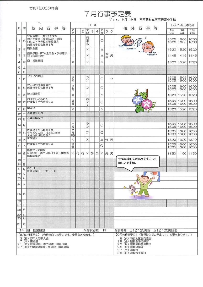 ◎7月の行事予定 R5南西小 7月行事予定 最新6.16.pdf