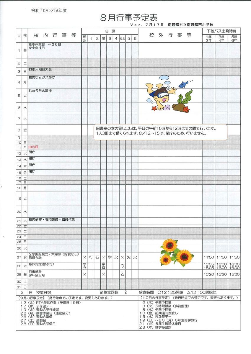 ◎8月の行事予定 R5南西小 8月行事予定 最新8.25.pdf