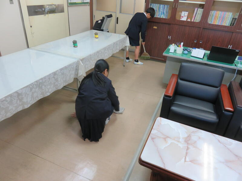 ふたりは黙々とほうきと雑巾を手に、校長室をキレイにしてくれました。