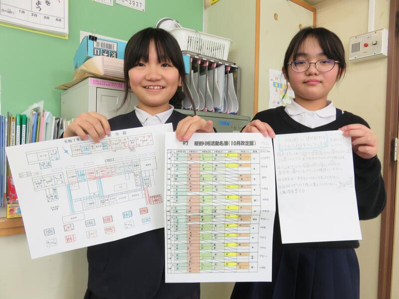 「人権環境委員会です。2月16日(月)から2週間、学年同士の仲を深めたいので、『縦割り班』でそうじをしたいんです。計画を持ってきました」