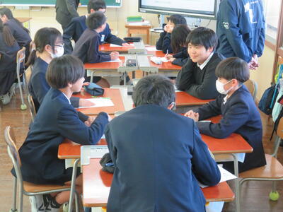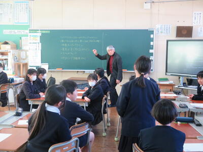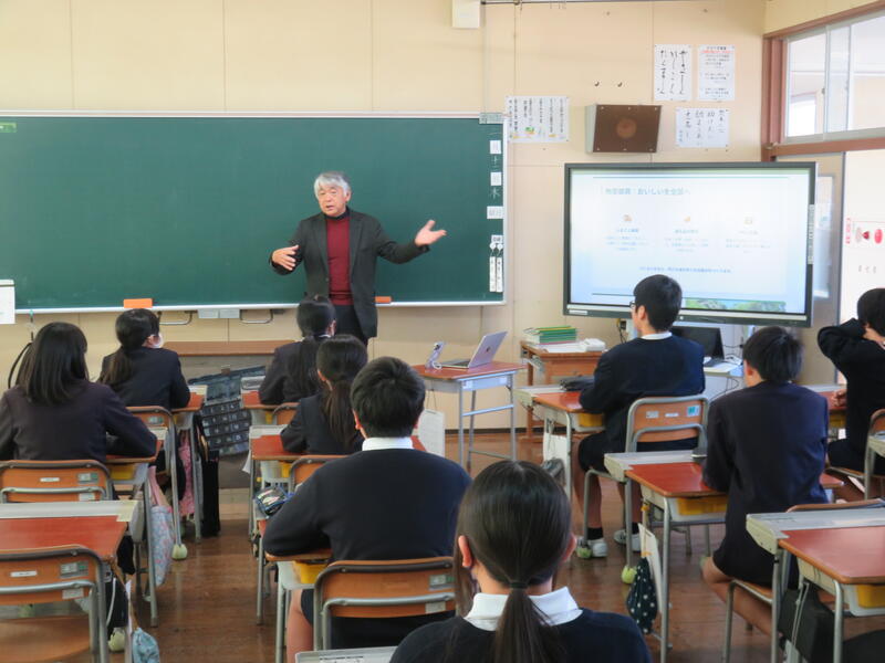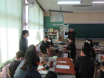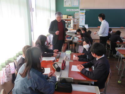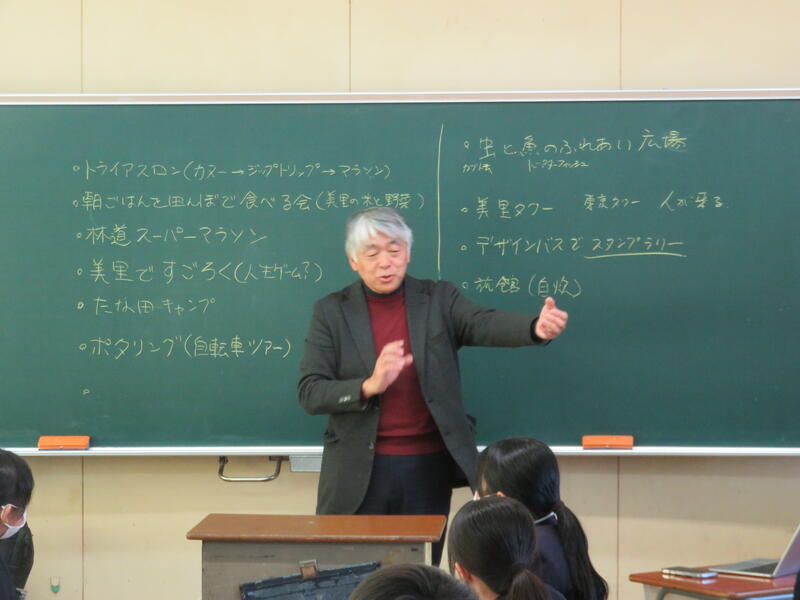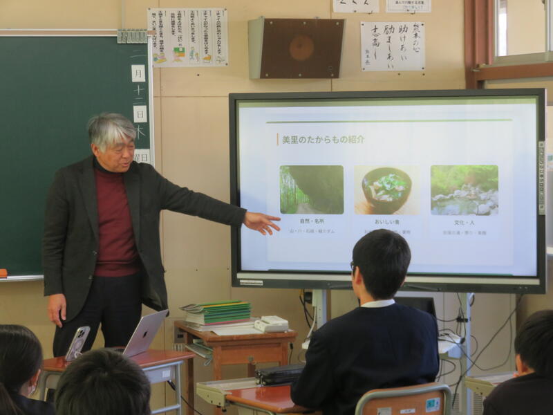 5時間目は、本校の学校運営協議会会長でもあり、美里町まちづくり公社マネージャーでもある濱田孝正さんをお迎えして「まちの活性化」をテーマに学習を行いました。