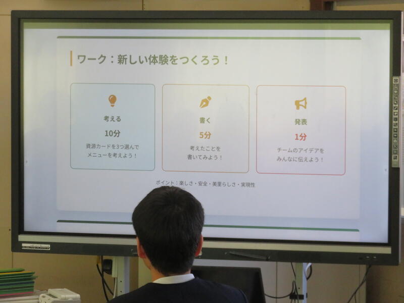 そこで、美里町の外に住んでいる人が美里町を何度も訪れたくなるようなアイデアを、班で話し合うことになりました。