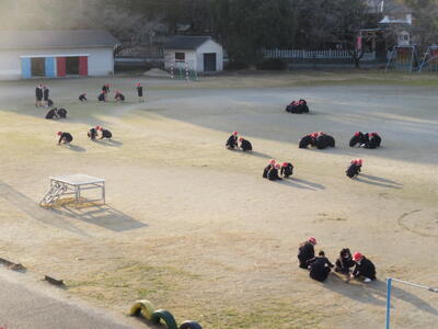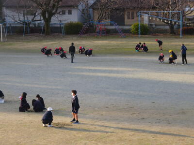 朝から子どもが放送していました。「今日は草取りをします。運動場に集合してください!」