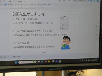 今日の授業のめあては、「自分の苦手なこと、得意ではないことを考えよう~どうすればよいかを考えよう~」でした。