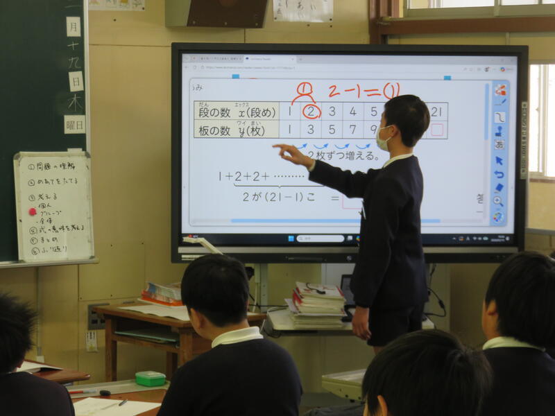 そこで、ある子が電子黒板を使って説明をしてくれました。すごいですね。