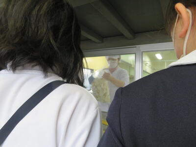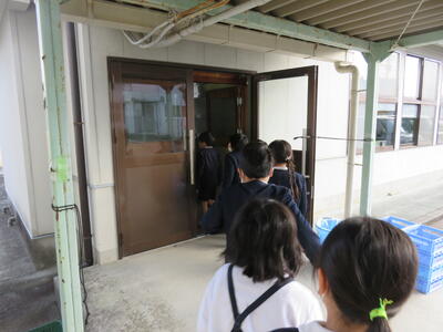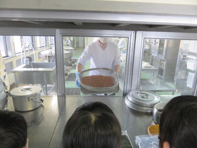 学校給食週間ということで、26日(月)~30日(金)にかけて、学年を分散して給食調理室見学が計画されています。今回は、2年生の見学に同行してみました。