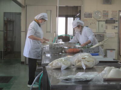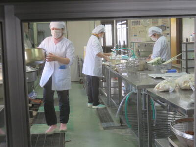 9:30でしたが、給食調理員の先生方は給食の準備にせっせと励んでおられるところでした。