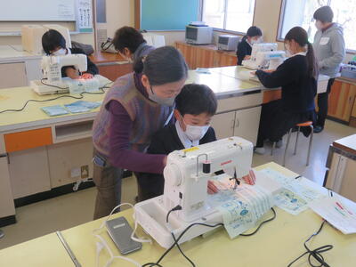 機種によって使い方が微妙に違うミシンですが、名人の皆様はそれをさっと理解され、子どもたちに手取り足取り教えてくださいました。子どもたちの扱いもうまく、子どもたちもどんどん上達している姿が見られました。