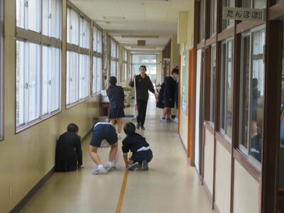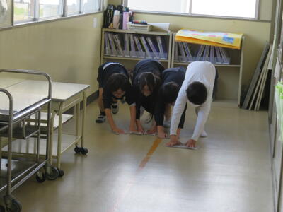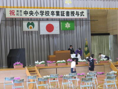 午後からは4・5年生により卒業式の準備。大まかな説明を聞き、6グループに分かれて開始しました。