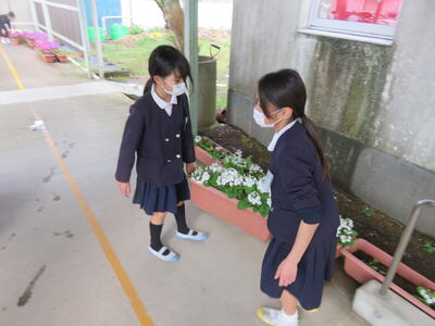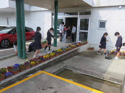 通路に飾る花をどんどん運び始めていました。どのプランターを使うかは担当の子たちが選んで決めていました。