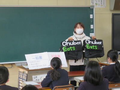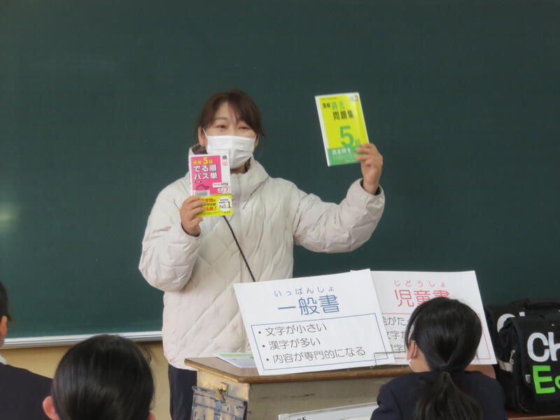 今朝、中央中学校の図書司書である、光井先生が6年教室を訪問されました。