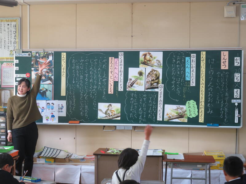 積極的に手を挙げて発表しようとする1年生の姿にうれしくなりました。