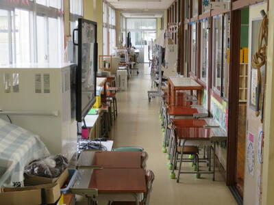 子どもたちに机やいすを廊下に出してもらっていたので、作業がしやすいですね。