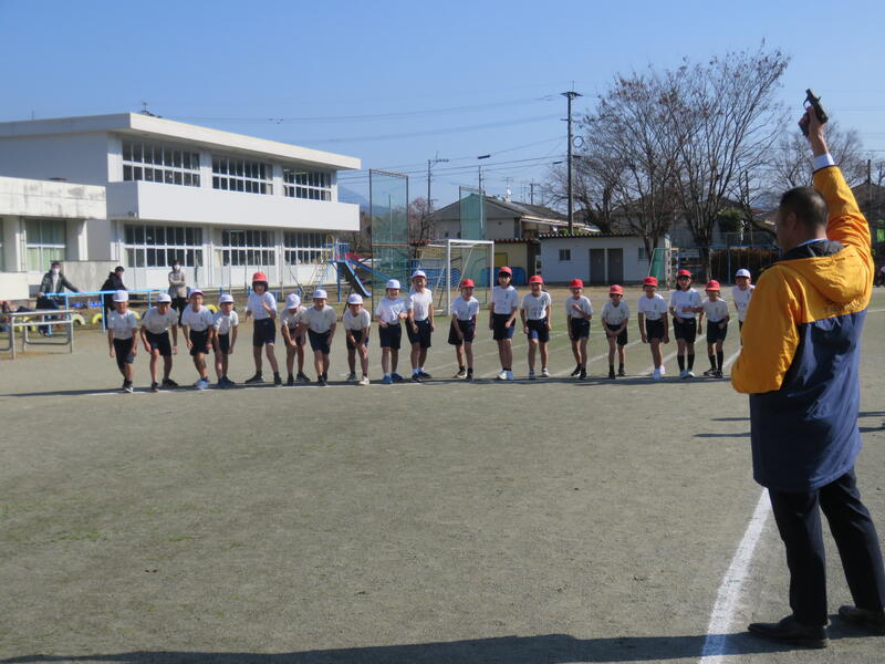 ピストルの号令を合図に、4年生が一斉に駆け出しました。