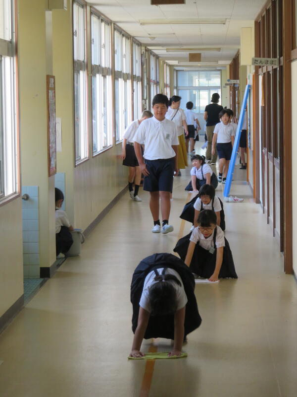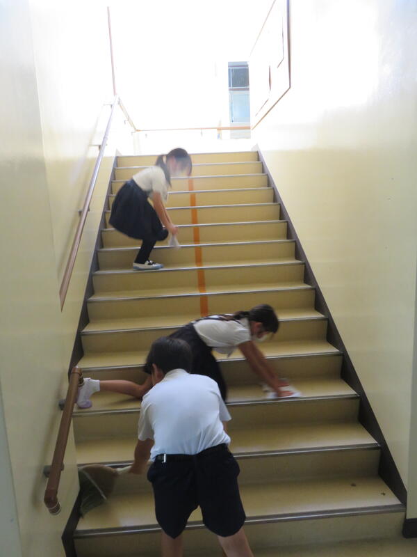ろうかを雑巾リレーしている子、階段を丁寧に掃いている子、黒板の下や机の間などを膝をついて雑巾できれいにふいている子、特別教室の床を一心不乱にふきあげている子...どの子もそれぞれの役割をしっかり果たして頑張っていました。