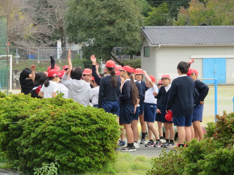 「今日はランニングをします。1・2年生はグラウンドの内側を、3~6年生はグラウンドの外側を走ってください」