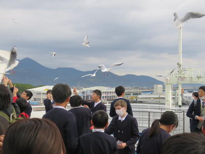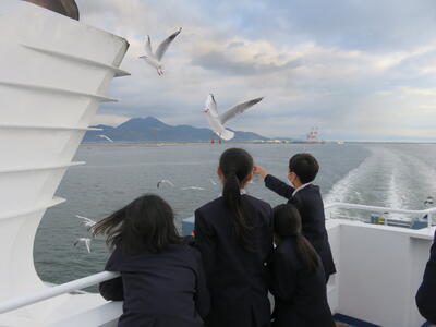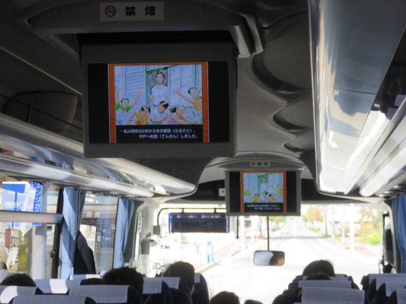 フェリーを降り、再びバスに乗って長崎市内に向かいました。車内では原爆被害にあった方の手記をもとにした動画を見て学習をさらに深めていきました。
