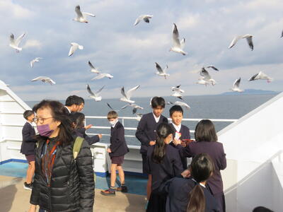 おやつではありません。「かもめのえさ」なのです。それをもってフェリーに乗船しました。